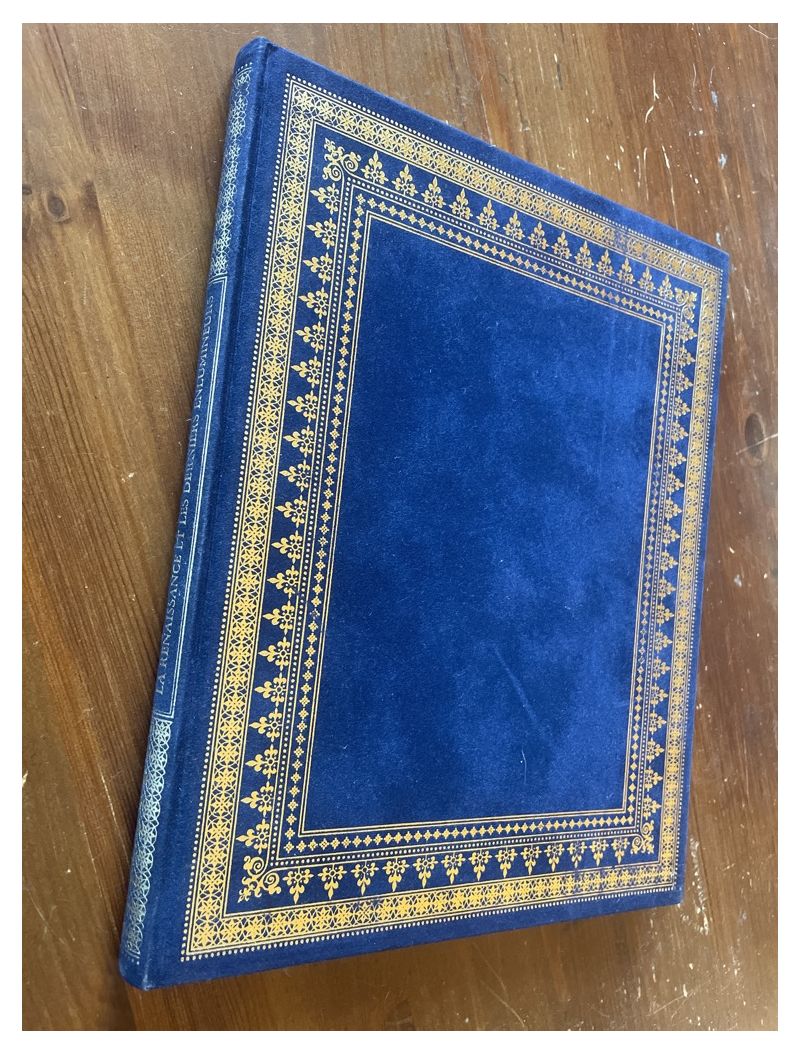 | Aspect | Pleine reliure de velours bleu avec décorations dorées sur les plats et le dos, très bon état |