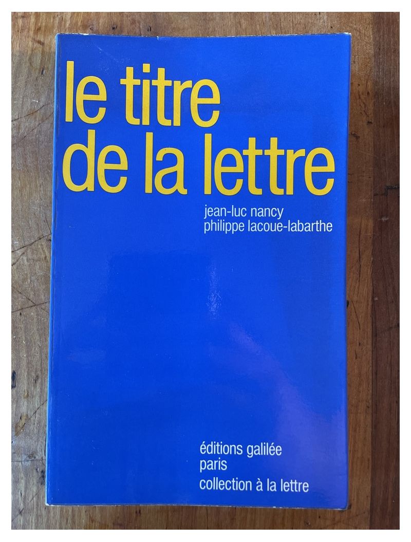 | Nom Auteur | Jean-Luc Nancy, Philippe Lacoue-Labarthe |