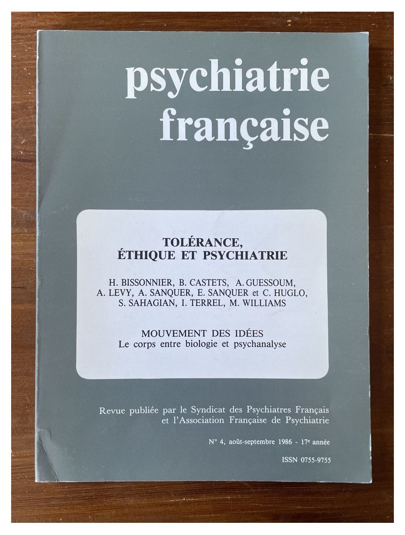Psychiatrie francaise, 17e annee, n° 4, aout-sept. 1986, Tolérance, éthique et psychiatrie